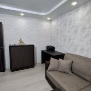 В данном жилом помещении полностью залита новая стяжка на полу, заменена электропроводка, трубы водоснабжения и канализации.В квартире сделан качественный ремонт : уложен ламинат и плитка на полу, на стенах оклеены обои и декоративный камень. В квартире на потолке- натяжной потолок.