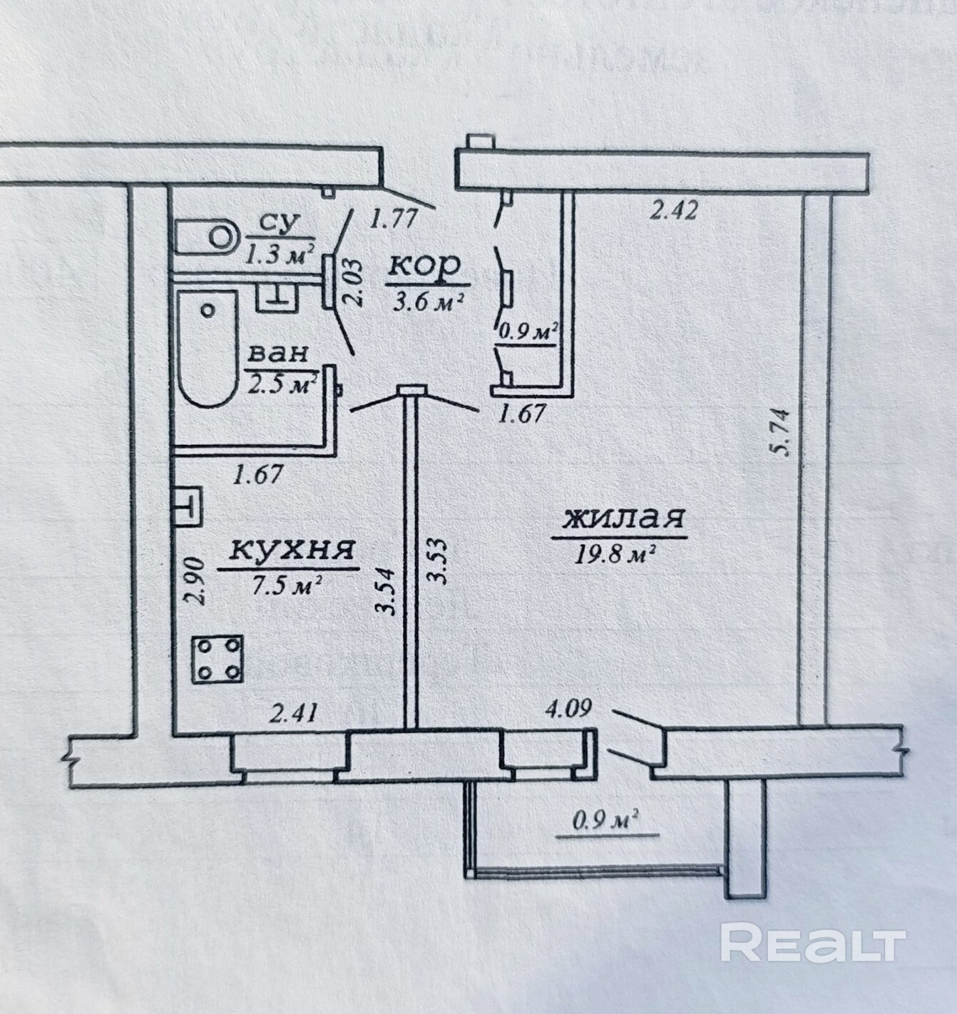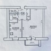 Параметры квартиры: общая площадь- 35.6 кв.м, жилая площадь - 19.8 кв.м, кухня – 7.5кв.м., раздельный санузел, балкон, закрепленный подвал.