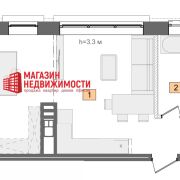 Общая площадь квартиры – 44,7 кв.м., жилая площадь- 33,5 кв.м., жилая комната с кухонным оборудованием- 38,5 кв.м., санузел- 6,1 кв.м. Высота потолков- 3,3 м.