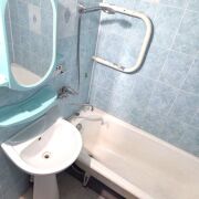 В наличии: металлическая входная дверь, аккуратные межкомнатные двери светлого цвета, плитка в ванной комнате хорошего качества без сколов, отлично уложена.