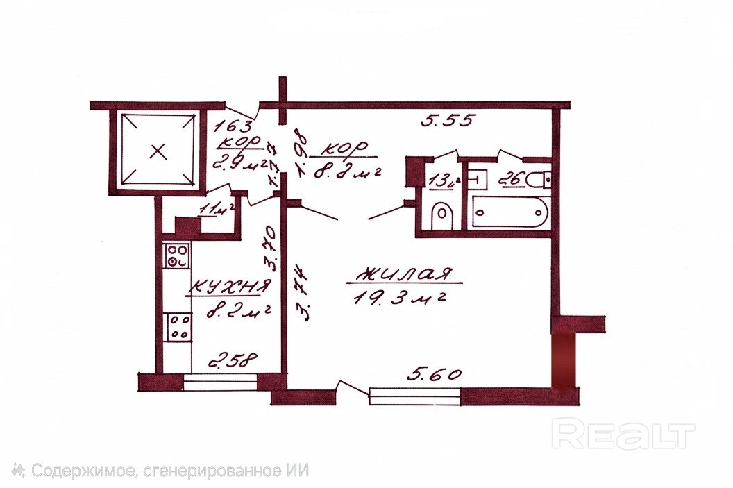 Жилая - 19,3 м2