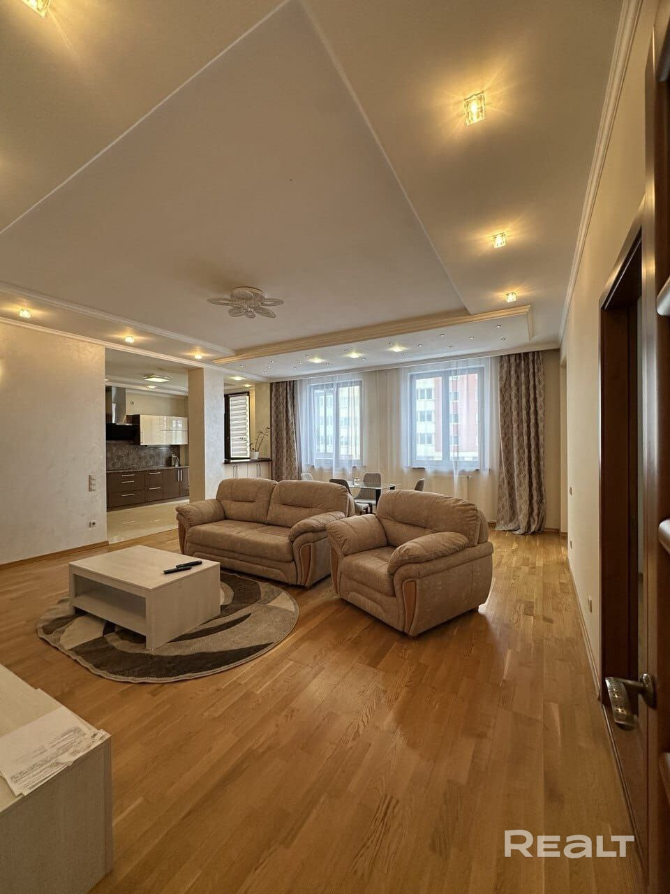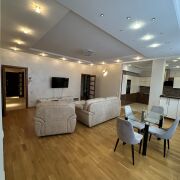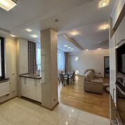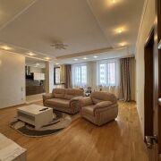 Квартира расположена на 2 этаже в доме бизнес-класса. Высокие потолки (3 м). В квартире гардеробная комната и 2 больших встроенных шкафа. Две просторные ванные комнаты (7,9 кв.м и 4,2 кв.м). Зал - 36,3 кв.м. Спальня - 17,4 кв.м. Детская - 12,3 кв.м. Лоджия 8 кв.м. ( выход из кухни). Квартира полностью укомплектована мебелью и современной техникой.