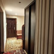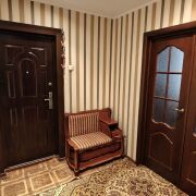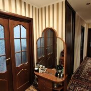 3-комнатная квартира, санузел раздельный, два балкона (кухня, спальня), окна - стеклопакеты в жилых комнатах, межкомнатные двери - деревянные, входная дверь - современного образца, потолки - в жилых комнатах натяжные, полы - линолеум (под коврами). Кухня: кухонный гарнитур, газовая плита, холодильник, морозильник, посудомоечная машина, фильтр для воды. В коридоре 2 встроенных командора. Квартира очень теплая. Собственный подвал и часть кладовки на этаже. Квартира расположена на 2 стороны.