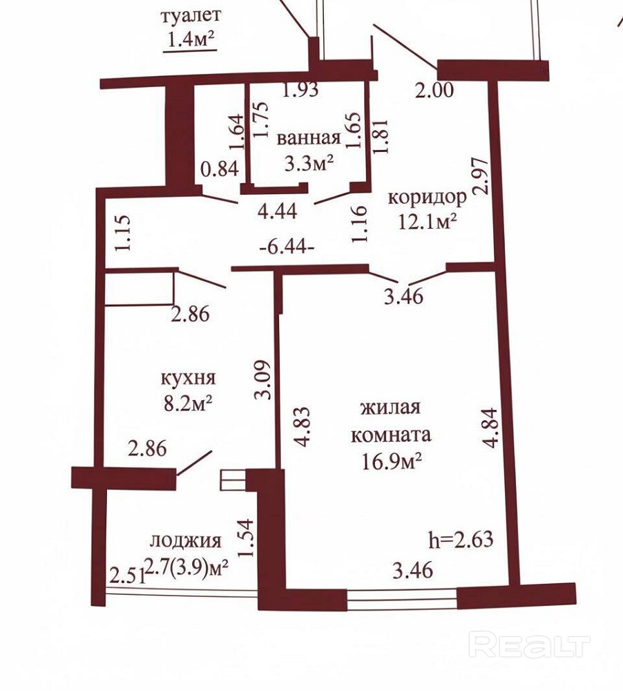 Функциональная и удобная планировка квартиры: общая площадь – 40.9 метров квадратных, жилая – 16.9 метров квадратных, кухня – 8.2 метров квадратных. Высота потолка – 2.63 метра. Санузел раздельный. Лоджия застеклена. Оконное остекление осуществлено энергосберегающими стеклопакетами.