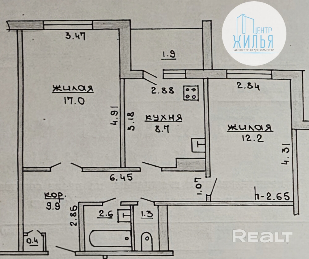 В микрорайоне Девятовка продаётся двухкомнатная квартира
