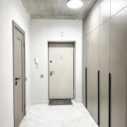 В квартире сделан дизайнерский ремонт, продумана функциональная планировка с четким зонированием. Стены окрашены, на полу ламинат, плитка в прихожей. При ремонте использованы качественные материалы отделки. Над окном встроен электро-карниз. Кухонная зона оборудована встроенной мебелью и бытовой техникой: холодильник «Атлант», посудомоечная машина, духовой шкаф, варочная панель, вытяжка, печь СВЧ – все марки «Hyndai». Ванная оборудована душевой кабиной с тропическим душем, унитаз финского производства, акриловая раковина, кран сенсорный. В прихожей установлен большой шкаф.