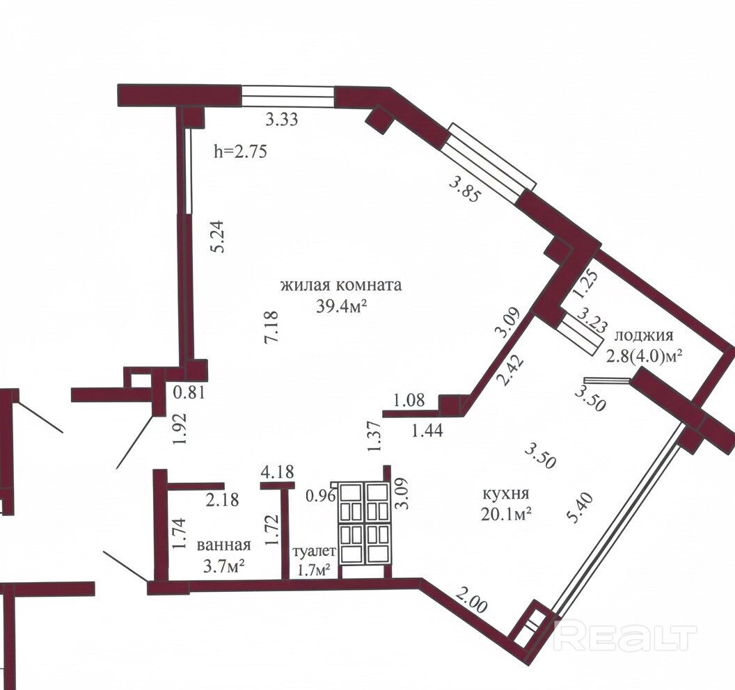 39.4 м²