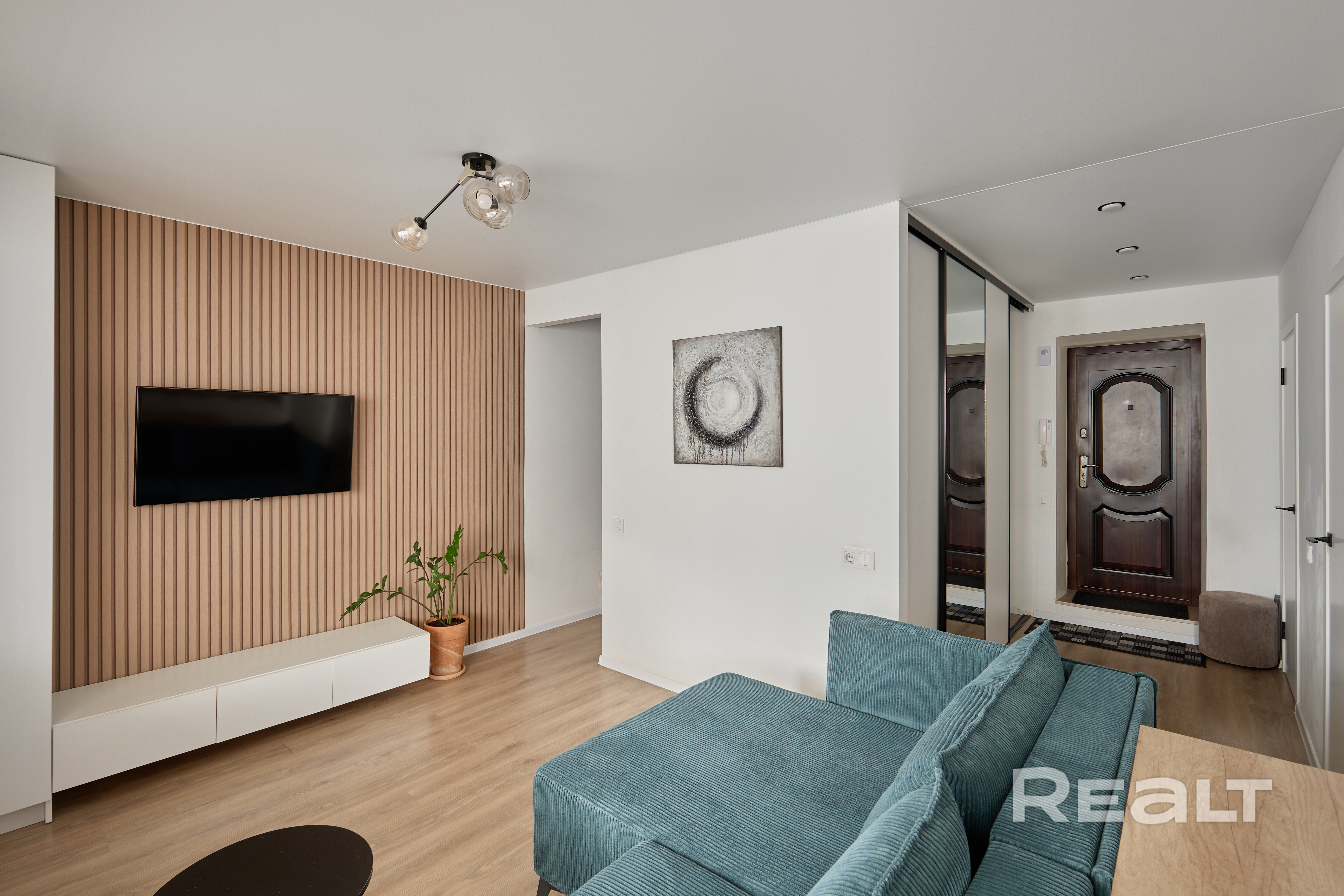 Квартира со светлым качественным ремонтом в современном стиле. Кухня оборудована встроенной техникой, раздельный санузел, в коридоре большой шкаф, надежная входная дверь.
