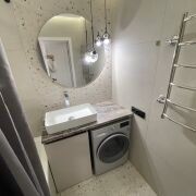 7 этаж/10 этажного панельного жилого дома. Год постройки 2022. Площадь общая 55.8, жилая 25.9,кухня 8.4 м2 совмещена с залом и лоджией(выполнены теплые полы). Одна панорамная лоджия 3.9 м2. Санузел раздельный. Уложен качественный ламинат,стены оклеены обоями натяжные потолки с теневым профилем.