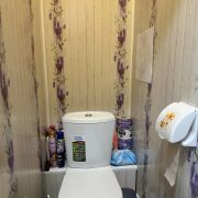 * ванна выложена плиткой, в туалете - пластиковые панели
