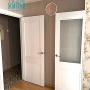 Напольное покрытие в комнатах – ламинат, в кухне и прихожей – линолеум. Санузел – в керамической плитке, новая сантехника, гидроизоляция по всему периметру до потолка.