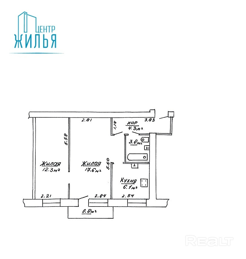 2 жилые комнаты, одна из которых является проходной, отдельная кухня, совместный санузел, балкон (застеклен), есть кладовка.