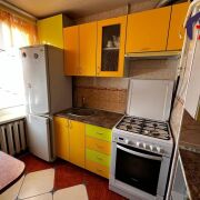 -В кухне установлен кухонный гарнитур и газовая плита — всё готово для ежедневного использования.