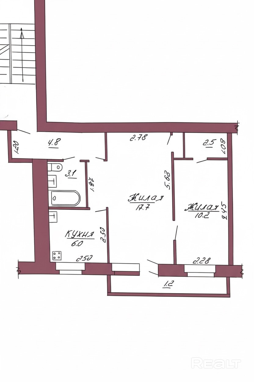 Планировка квартиры: две изолированные комнаты 17,7 и 10,2 м2. Общая площадь – 44,3 м2. Уютная кухня 6,0 м2. Аккуратный подъезд, доброжелательные соседи. Материал полов: керамическая плитка, доска, линолеум.