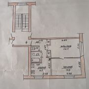 Общая площадь 41,1 м2, жилая – 25,6, кухня – 6,5. Этаж 2/2, кирпичный дом.