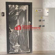 Входная дверь в дом — алюминиевый профиль индивидуального дизайна. Все входные группы в доме алюминиевые.  Премиальная домофонная система с доступом по сканированию лица. В квартире видеодомофон.