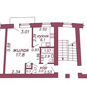 Квартира находится на 2 этаже 4-этажного кирпичного дома. Год постройки дома - 1963. Общая площадь - 30.5м2, жилая - 17.8м2. Санузел - совмещенный.