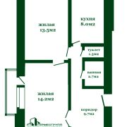 Общая площадь квартиры 49,4 м2. Жилая 27,7 м2. Кухня 8 м2.