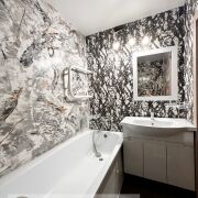 В квартире установлены окна ПВХ, лоджии так же застеклены рамой ПВХ, натянут потолок в спальне 12,3 кв.м., в коридоре, ванной комнате и туалете, в гостиной потолок из гипсокартона, с расположенным на нем точечным светом, в спальне 11,3 кв.м. и кухне потолок оштукатурен, ванная комната выложена плиткой, поклеены обои во всей квартире, на полу в комнатах, кухне, коридоре постелен линолеум.