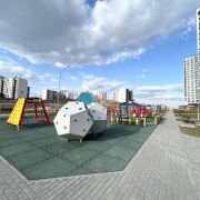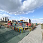 За домом просторная авто парковка и современная детская площадка.