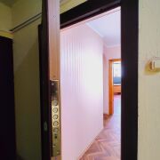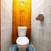 - пол доска массив покрыт ДВП, в санузле и ванной плитка,