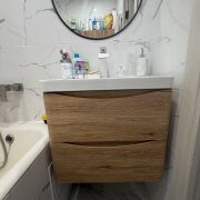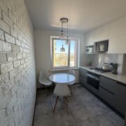 В квартире имеются две большие гардеробная для хранения вещей. Просторная кухня 8,9 кв.м. оборудована мебелью и бытовой техникой (варочная панель, духовой шкаф, вытяжка посудомоечная машина). На кухне, в зоне между нижними и верхними шкафами (кухонный фартук) уложен керамогранит, для большей защиты от жира, влаги, пара, тем самым защиищая стену от загрязнений, а также создания стильного акцента.