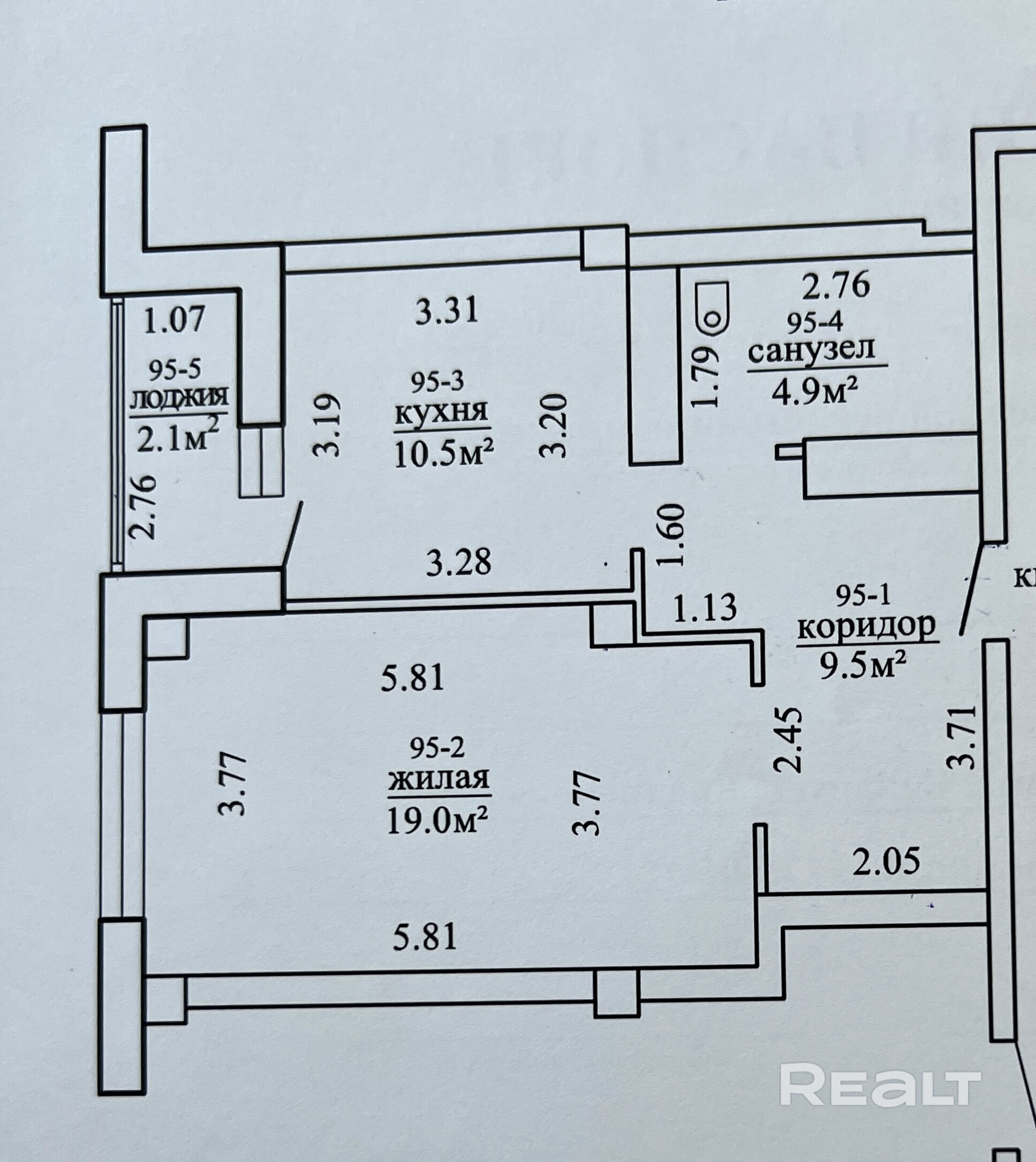 Жилая - 19 кв.м. - возможно разместить большую кровать, шкаф, диван (зону отдыха).