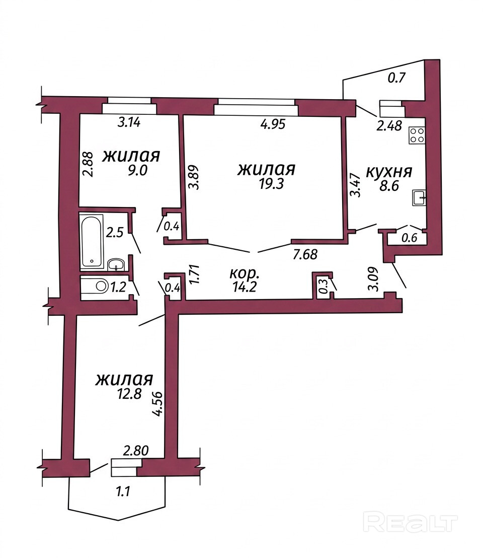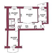 Трехкомнатная квартира в центральной части Гродно возле железнодорожного вокзала. Общая площадь квартиры – 69 кв. м., жилая – 41 кв. м., кухня – 8,6 кв. м. Квартира в простом жилом состоянии, под ремонт. Есть две застекленные лоджии на разные стороны дома. Раздельный санузел облицован плиткой, заменена сантехника. Установлены окна ПВХ. Полы дощатые, стены оклеены обоями. Материал стен позволяет выполнить перепланировку. Дом утеплен, оштукатурен и окрашен. Благоустроенная придомовая территория.