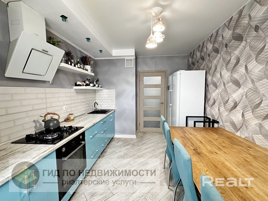 Квартира полностью готова для Вашего комфортного проживания: установлены современные стеклопакеты с деревянным профилем, лоджия застеклена рамой ПВХ, натяжные потолки с встроенным точечным светом, ванная комната и туалет выложены плиткой, поклеены обои во всей квартире, на полу в гостиной, спальне постелен ламинат, в коридоре и кухне – плитка. Квартира оборудована мебелью и техникой, которая входит в стоимость: встроенная кухня с духовым шкафом, варочной панелью и вытяжкой, встроенный шкаф в прихожей.