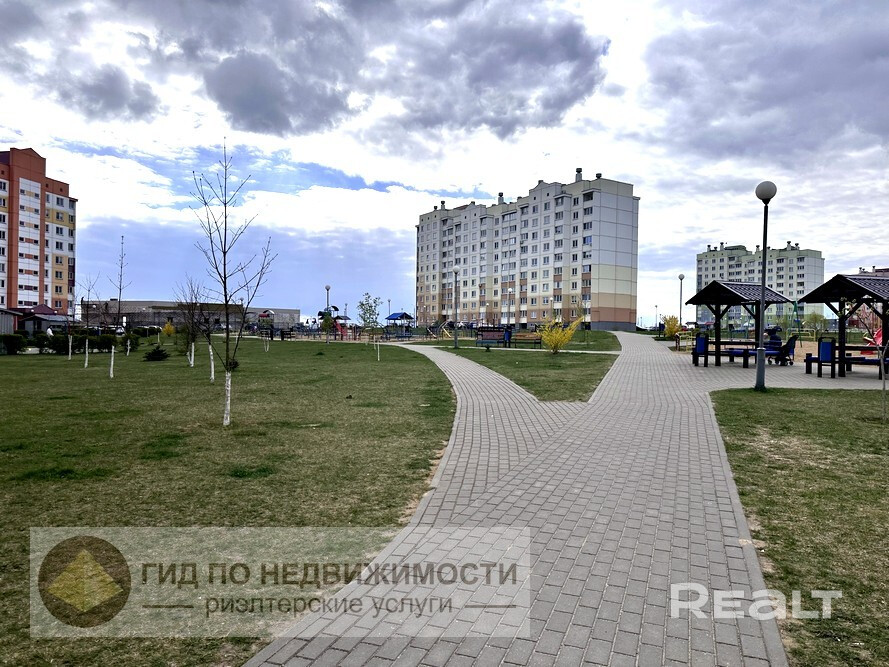 Стоит отметить удачное расположение дома. В непосредственной близости расположены: множество продуктовых и хозяйственных магазинов («Санта», «Ами», «Евроопт», «Грошик», «Белмаркет», и др), в самом доме так же имеется продуктовый магазин, ТЦ «Парус», школы с бассейном №41, №39, ясли-сады №106, №109, №107, №76, №110, поликлиника №8, пункты «Wildberries», «Ozon», «Белпочта», лесопарк «Ольшанка», парикмахерские, салоны красоты, остановки общественного транспорта.
