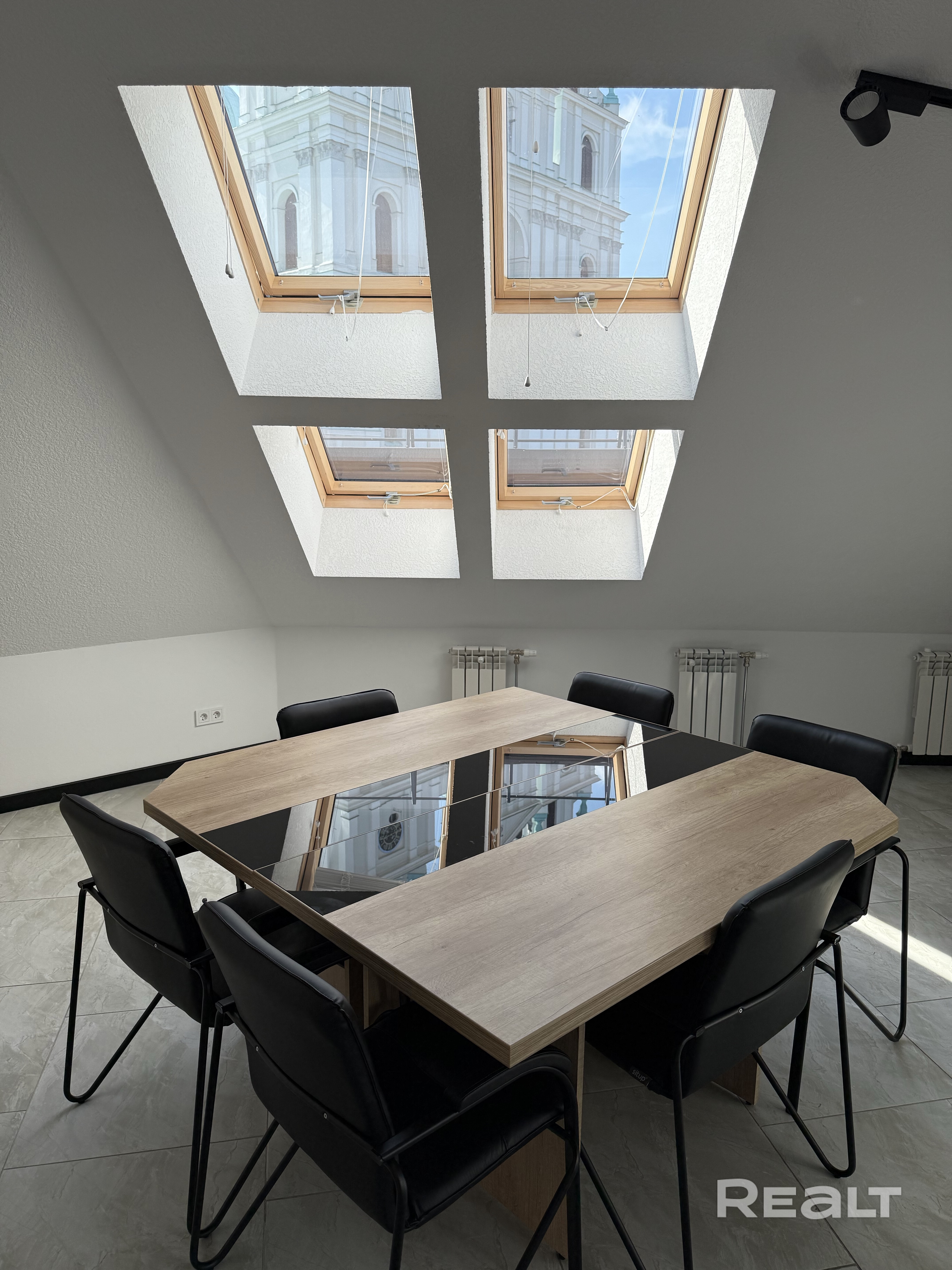 Мансардный этаж с высокими потолками обеспечивает уникальный стиль и геометрию пространства. Волшебный вид на Фарный костел – создаст исключительную атмосферу.
