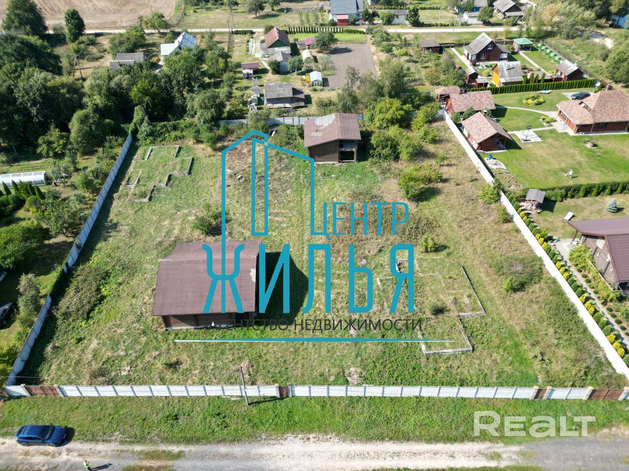 На участке залит фундамент под дом. И установлен дом из бруса. Канализация – выгребная яма. Скважина на участке. Электричество.