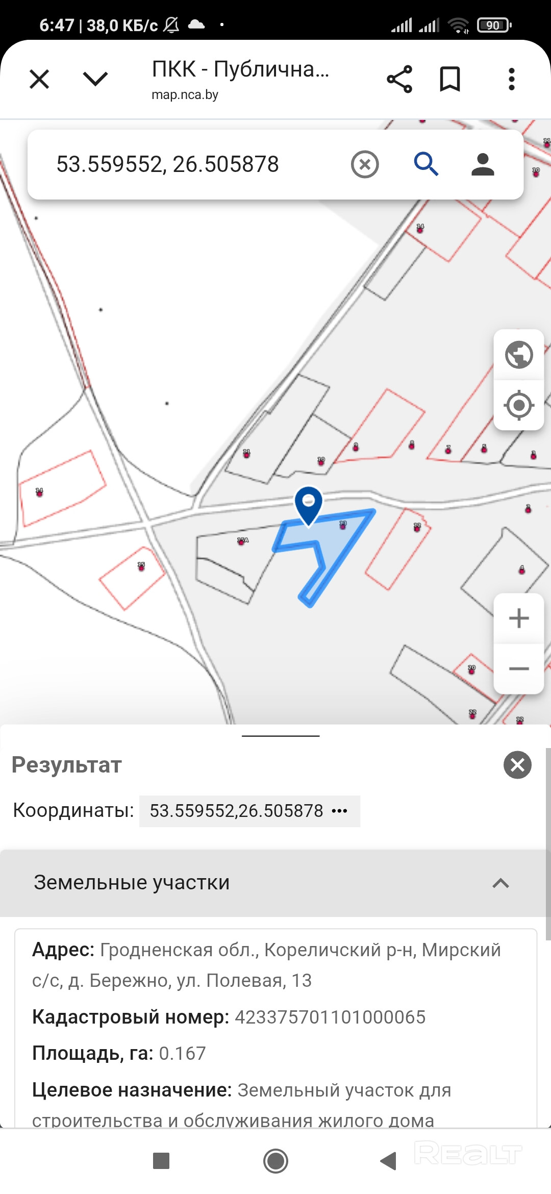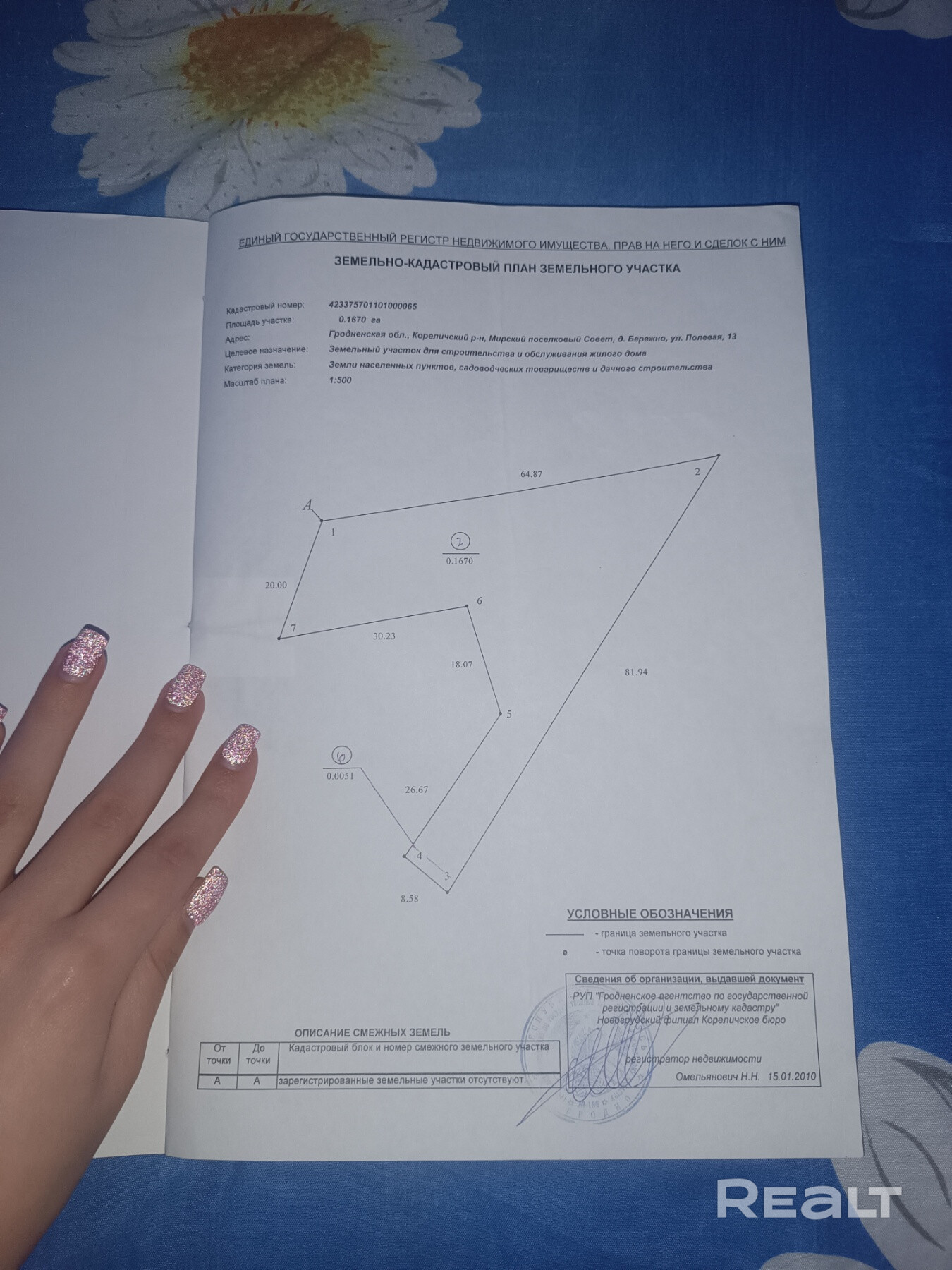 Купить участок, д. Бережно, ул. Полевая, 13 (Кореличский р-н, Гродненская область)