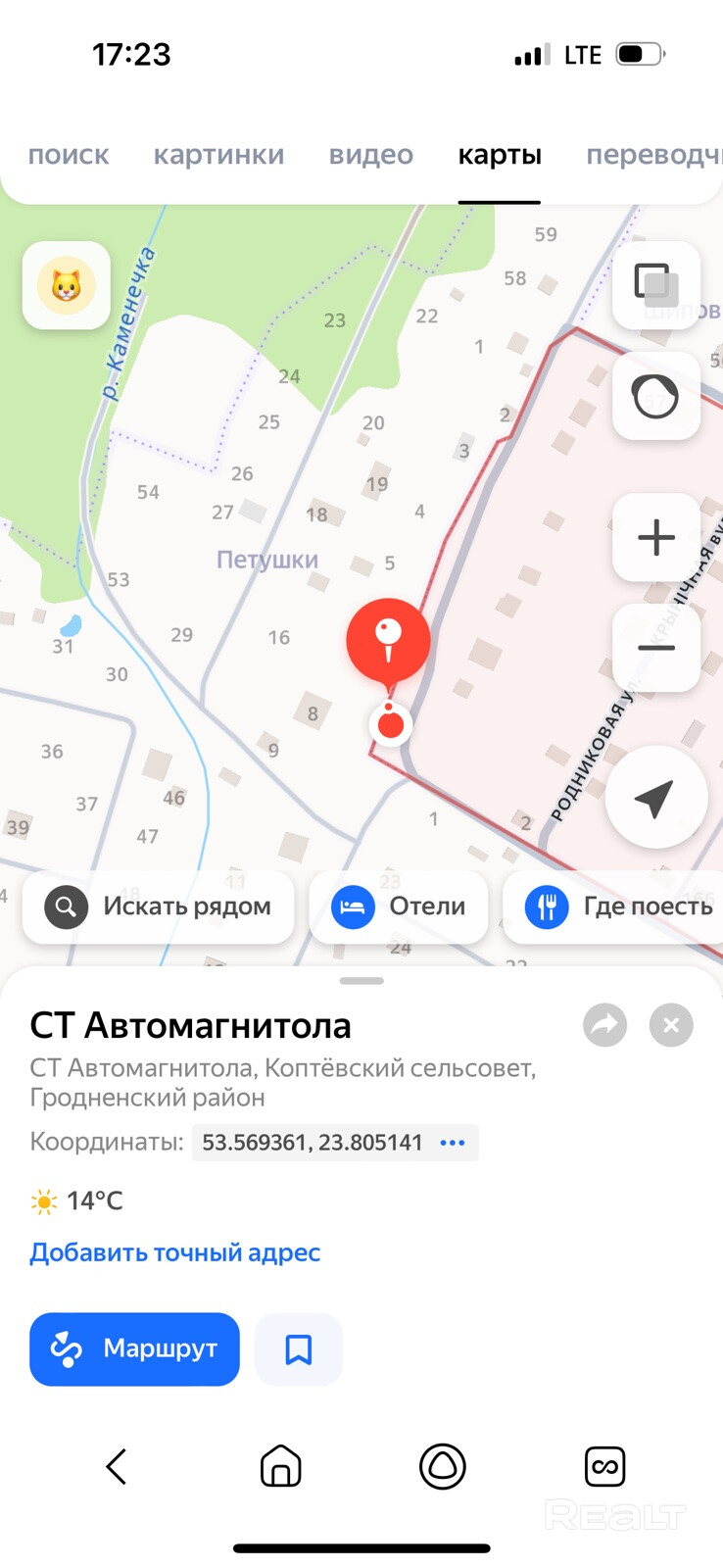 Продается отличный земельный участок в 8 км от города, рядом с д. Каменка ,д. Бросты, Коптевский с/с , в СТ Автомагнитола .