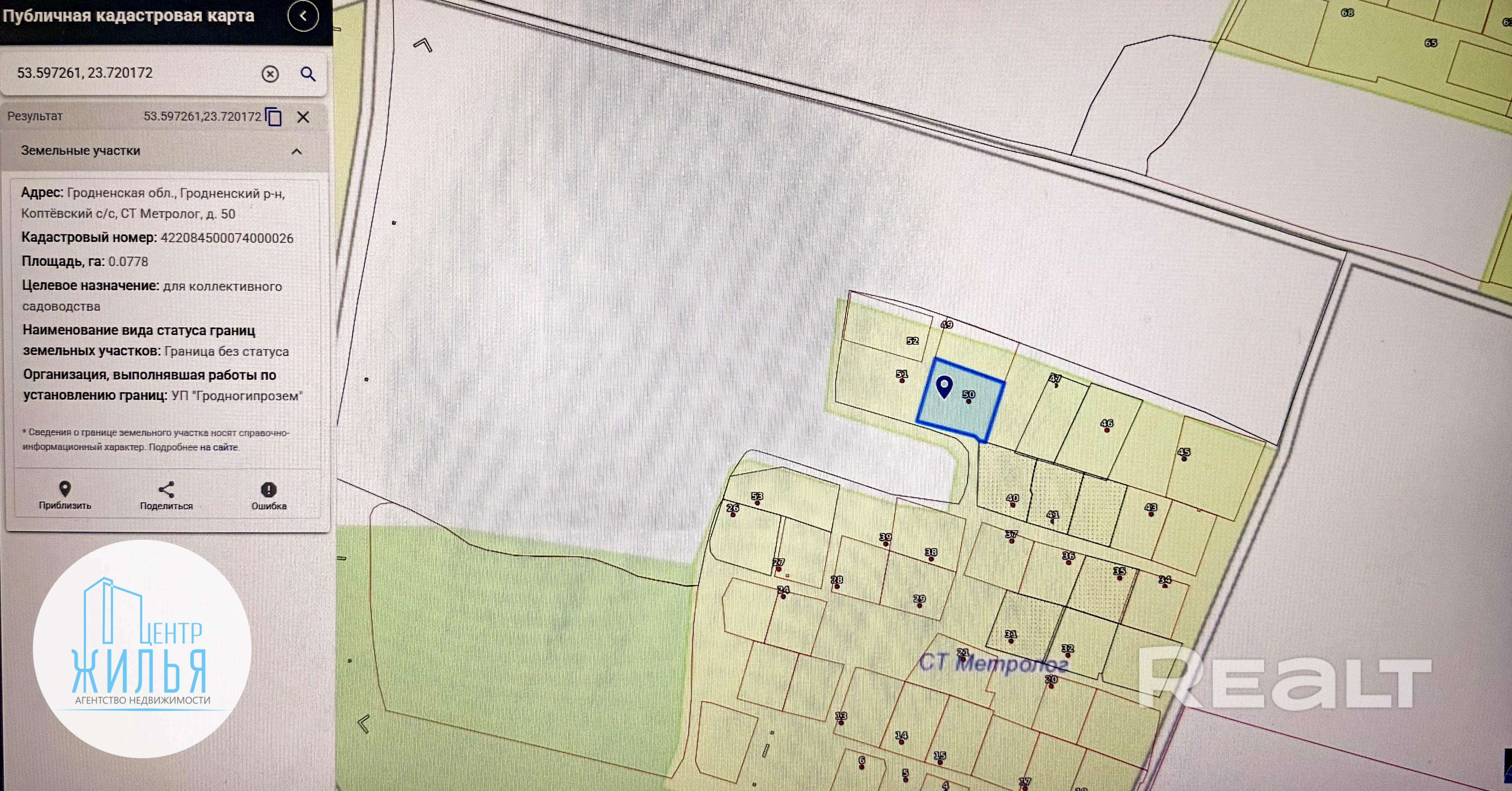 В продаже земельный участок в СТ "Метролог", район Коробчицы. Участок расположен в одном из комфортных районов. В 5 минутах езды от АТК “Гарадзенскi маентак “Каробчыцы”