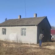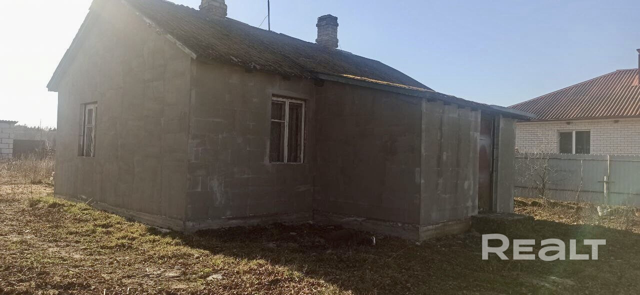 домик щитовой, обшитый газоселикатными блоками, хозпостройки, участок огорожен забором из металлопрофиля, магазин рядом, близко речка.