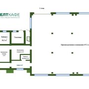 Первый этаж: производственный цех 457 м2, высота потолков 8,0 м. Двое подъемных секционных ворот, с возможностью заезда грузовых машин. Высота ворот 4,1 м, ширина 4,0 м.