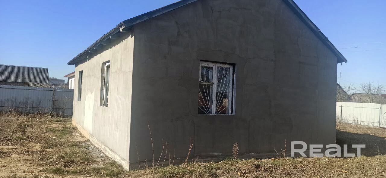 Теплый сухой дом из дерева, обложен блоками и оштукатурен.