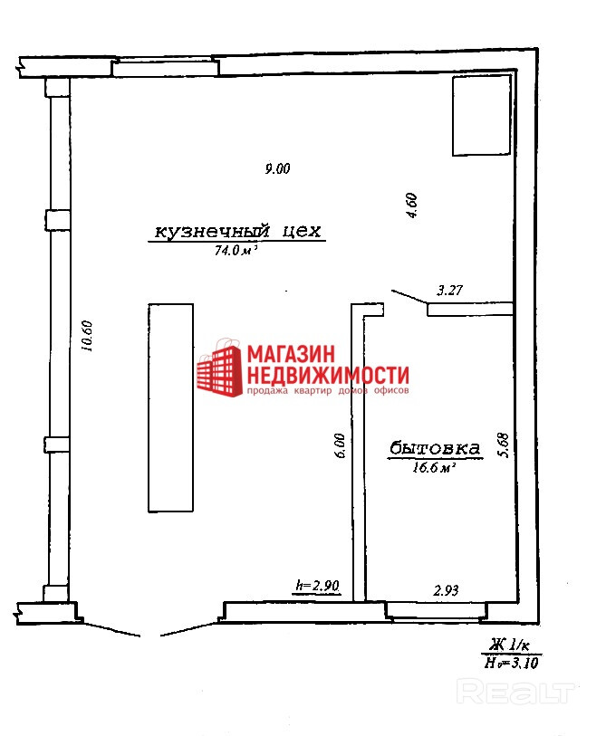 Помещение состоит из кузнечного цеха площадью 74, 0 м. кв. и бытовки площадью 16,6 м. кв.