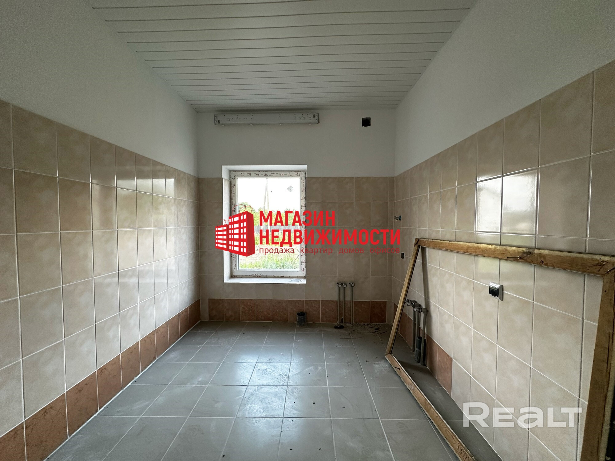 Фундамент – монолитный железобетонный, наружные стены – бетонные блоки, перекрытие – ж/б плиты, кровля – битумно-полимерная с утеплителем, окна – стеклопакеты ПВХ. Есть все коммуникации: отопление от газового котла, водоснабжение – центральное (от водонапорной башни), канализация – местная (септик), горячее водоснабжение – от водонагревателя. Работы по внутренней и внешней отделке завершены. Есть отдельный вход с улицы, и входы со двора.
