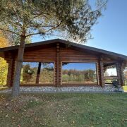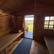 Деревянные домики оснащены душем/с/узлом, две кровати со столом.на участках по мангалу для проведения активной рыбной ловли и отдыха.