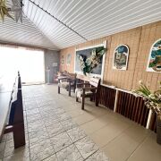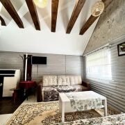 три дома: один – основной с мансардой и два гостевых с террасами. Наружные стены и отделка – всё из натуральных, древесных материалов, окна ПВХ, пол частично уложен натуральной доской, частично плитка, крыша – металлочерепица. В основном доме оборудована печь-камин, электроотопление, водонагреватель, кондиционер. На первом этаже находится кухня с установленной бытовой техникой, индукционная плита, посудомоечная машинка. Также находится просторный зал с атмосферным камином, раздельный с/узел, на втором этаже – спальные две комнаты. В гостевых домиках пол – плитка c подогревом, общей площадью по 30 кв.м., основной дом – 64 кв.м. Год постройки домов – 2018 г. Также на территории имеется летняя кухня, площадью 46 кв.м, оборудована с/узлом, печью, бытовая техника, год постройки 2018. Имеется также беседка, используется для корпоративных мероприятий, вместительностью до 30 человек. В беседке витражные окна, материал стен – блок, крыша – металлопрофиль, общ. пл. помещения 60 кв.м. с установленной внутри мангальной зоной для комфортного проведения отдыха. Отдельное внимание уделяется бане, так как это не только сауна, но и наличие привлекательной купели с видом на просторы местности. В бане имеются сауна, с/у с установленной техникой, комната для отдыха. Беседка и баня были оборудованы для пользования с 2024 года. С задней части беседки построен вместительный сарай из блока, общ. пл. 32 кв.м., приспособлен для хранения хоз.инвентаря. Предусмотрена зона для активных игр детей. Также отдельно обустроена зона барбекю для отдыха под открытым небом с интересным оформлением из камня.
