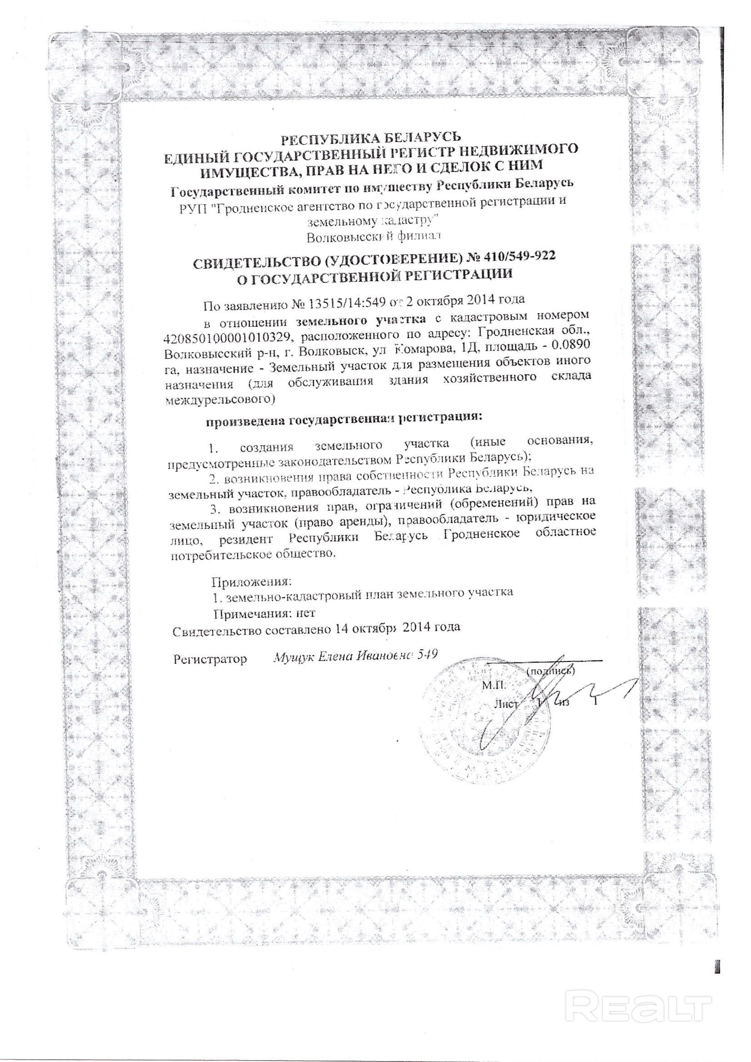 Купить склад, г. Волковыск, ул. Комарова, 1/Д