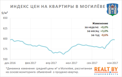 Средняя цена предложения в объявлениях о продаже квартир в Могилёве на минувшей неделе не изменилась и составила 598 $/м2.
