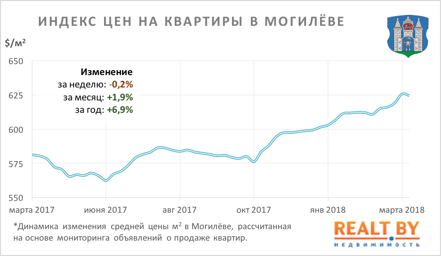 Витебск: 612 $/м2 (+ 0,8% за неделю);