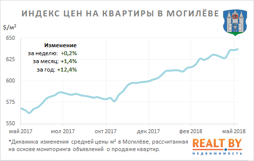 Средняя цена предложения в объявлениях о продаже квартир в Могилёве на минувшей неделе выросла на 0,2% и составила 637 $/м2.