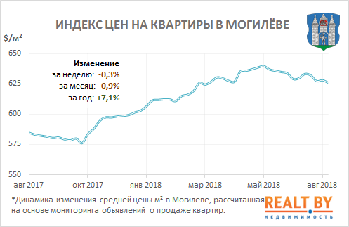 Средняя цена предложения в объявлениях о продаже квартир в Могилёве на минувшей неделе снизилась на 0,3% и составила 626 $/м2.