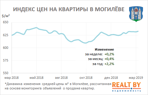 Средняя цена предложения в объявлениях о продаже квартир в Могилёве на минувшей неделе выросла на 0,2% и составила 633 $/м2.