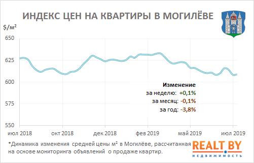 Средняя цена предложения в объявлениях о продаже квартир в Могилёве на минувшей неделе выросла на 0,1% и составила 609 $/м2.