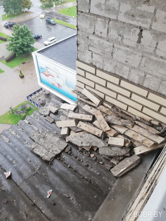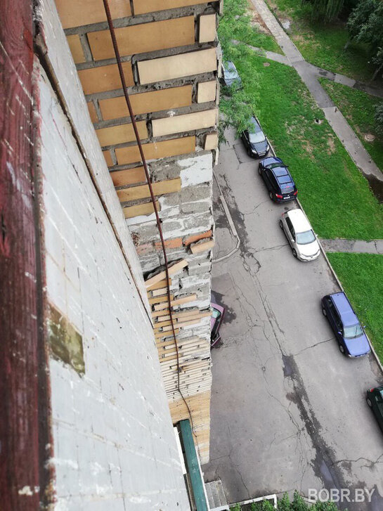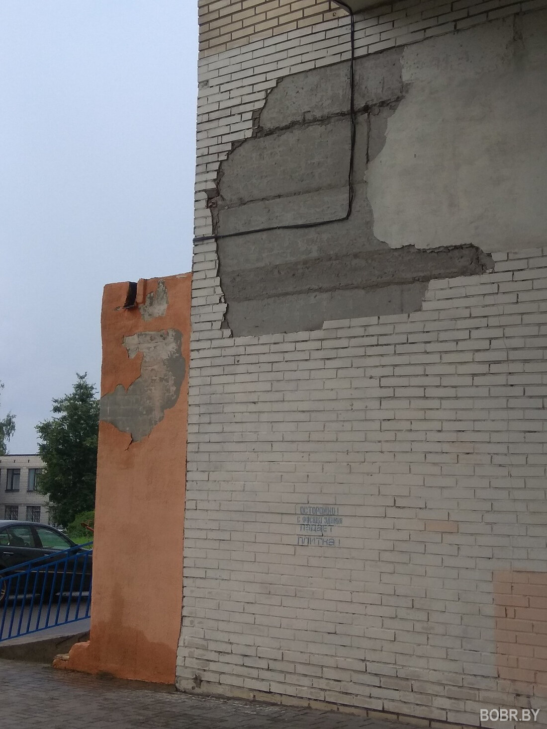 Виктор купил квартиру в Бобруйске и переехал в злополучный дом недавно. Он сразу обратил внимание на проблему, от которой страдает и здание, и все, кто проходит рядом с его ненадежным фасадом. Неподалеку от дома расположены два детских сада, рядом — две школы. В итоге, детворы во дворе очень много. Жильцы не раз обращались в ЖЭУ, но работники лишь подмазывали особо аварийные участки. Тем временем плитка все продолжает опадать. По мнению жильцов, спасти их дом может только полное избавление от этой «листвы».